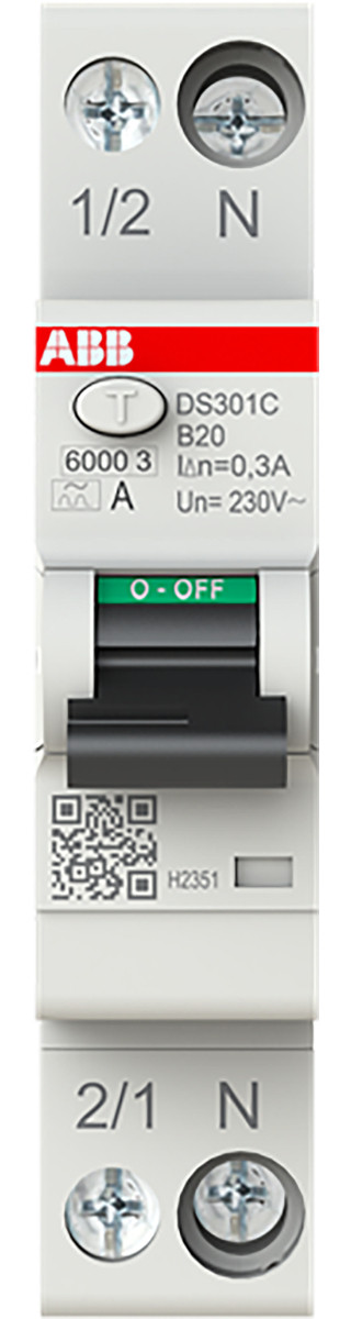 ABB Componenten System pro M compact Aardlekautomaat 1P+N, B char, 20a, 300ma, 6ka - 2CSR255163R3205