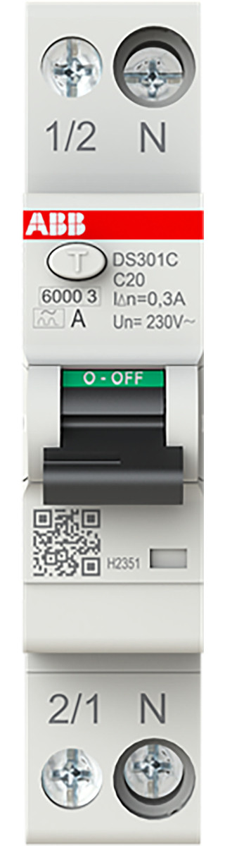 ABB Componenten System pro M compact Aardlekautomaat 1P+N, C char, 20a, 300ma, 6ka