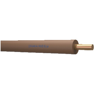 Draka HVD H07Z1-U installatiedraad, nom. geleiderdoorsnede 6mm², samenstelling geleider klasse 1 = massief, aderkleur bruin, nom. geleiderdiameter 2.7mm, aderisolatie copolymeer thermoplastisc, toegestane kabelbuitentemperatuur, -40 - +50°C, halogeenvrij volgens EN 60754-1/2,