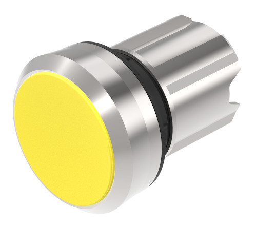 Eao 45 drukknop frontelement, knop geel, bouwvorm lens rond, terugverend, frontrand chroom, type knop vlak/plat, gatdiameter 22.5mm, frontrand metaal, beschermingsgraad frontzijde (IP) IP67/IP69K, met frontring, 1 commandoposities