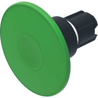 Eao 45 drukknop frontelement (paddestoel), met frontring, knop groen, gatdiameter 22.5mm, terugverend, beschermingsgraad (IP) IP67/IP69K, diameter kap 60mm, type knop hoog, bouwvorm lens rond, frontrand zwart, frontrand kunststof