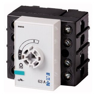 Eaton Industries Duco lastscheider, uitvoering als hoofdschakelaar, uitvoering als werkschakelaar, 1 schakelaars, max. nom. bedrijfsspanning Ue bij A 415V, bedrijfsspanning (meetspanning) 415V, nom. continustroom Iu 63A, nom. continustroom, AC-23, 400 V 63A, nom. continustroom, AC-21, 400 V 63A,
