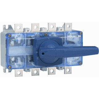 Lastscheider Dumeco type DMV 400N/1, schakelvermogen 400 A, 3- polig + N (vast), met as en draaigreep type C met schakelstandindicatie I/O, hoogte van de schakelaar: 170 mm (van onderzijde schakelaar tot bovenzijde bedieningsas/draaigreep), inclusief aansluittoebehoren
