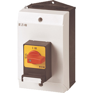 Eaton Industries lastscheider, apparaatbouwvorm compleet apparaat in behu, nom. continustroom Iu 20A, uitvoering als hoofdschakelaar, uitvoering als werkschakelaar, 5 polen, uitvoering als noodstopinrichting, bedieningselement rood, 1 schakelaars, max. nom. bedrijfsspanning Ue bij A 690V,