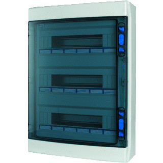 Eaton Industries installatiekast leeg, grijs, (hxbxd) 586x418x145mm, DIN-rail, inbouwdiepte 70mm, aanbouwmogelijkheid, uitvoering deksel met uitsparing, behuizing kunststof, RAL-nummer 7035, beschermingsgraad (IP) IP65, opbouw, 3 rijen, breedte in module-eenheden 18, transparant deksel/deur,
