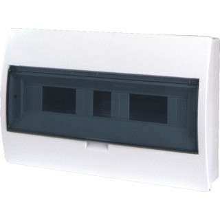 Eaton Industries installatiekast leeg, wit, (hxbxd) 260x410x98mm, DIN-rail, inbouwdiepte 70mm, uitvoering deksel gesloten, behuizing kunststof, RAL-nummer 9003, beschermingsgraad (IP) IP40, opbouw, 1 rijen, breedte in module-eenheden 18, type sluiting overig, transparant deksel/deur,