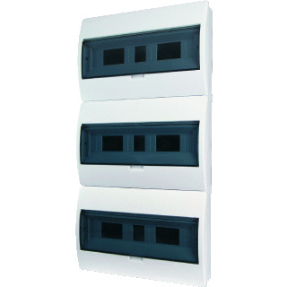 Eaton Industries installatiekast leeg, wit, (hxbxd) 784x410x98mm, DIN-rail, inbouwdiepte 70mm, uitvoering deksel gesloten, behuizing kunststof, RAL-nummer 9003, beschermingsgraad (IP) IP40, opbouw, 3 rijen, breedte in module-eenheden 18, type sluiting overig, transparant deksel/deur,
