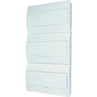 Eaton Industries installatiekast leeg, wit, (hxbxd) 784x410x98mm, DIN-rail, inbouwdiepte 70mm, uitvoering deksel gesloten, behuizing kunststof, RAL-nummer 9003, beschermingsgraad (IP) IP40, opbouw, 3 rijen, breedte in module-eenheden 18, type sluiting overig, soort afdekking deur,