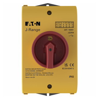 Eaton J hoofdschakelaar Hoofdschakelaar, 3-polig + N, 32 A, nood-uit-functie, opbouw, gele beh