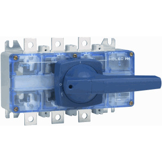 Lastscheider Dumeco type DMV 400N/3, schakelvermogen 400 A, 3- polig, met as en draaigreep type C met schakelstandindicatie I/O, hoogte van de schakelaar: 170 mm (van onderzijde schakelaar tot bovenzijde bedieningsas/draaigreep), inclusief aansluittoebehoren