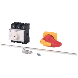 Hoofdschakelaar, Assortiment: Hoofdschakelaar, Werkschakelaars, Werkschakelaars, Typekenner: P3, STOP-functie: NOOD-UIT-functie, Met rode draaigreep en gele plaat, Aanwijzingen: Met metalen as, voor kastdiepte 400 mm, Informatie over de uitlevering: Hulpschakelaarcontact of nulleider naderhand monteerbaar., 3-polig, Afsluitbaarheid: Afsluitbaar in 0-stand, beschermingsgraad: Front IP65, Bouwvorm: tussenbouw, Nom. vermogen AC-23A, 50 - 60 Hz 400 V: P = 55 kW, nominale continu stroom: Iu = 100 A, normen en bepalingen: IEC/EN 60947, VDE 0660, IEC/EN 60204, Lastscheider conform IEC/EN 60947-3