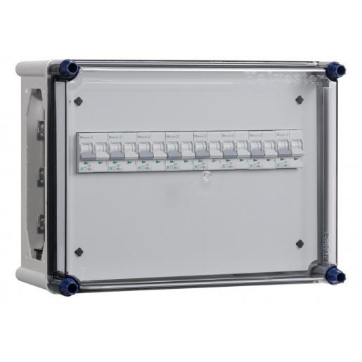 Eaton Industries Halyester GLN 44.. installatiekast, (hxbxd) 270x360x171mm, 3 fasen, beveiliging installatie-/aardlekautom, totaal aantal groepen 8, 8 directe groepen, 8 lichtgroepen, behuizing kunststof, beschermingsgraad (IP) IP66, aanbouwmogelijkheid, met transparant deksel