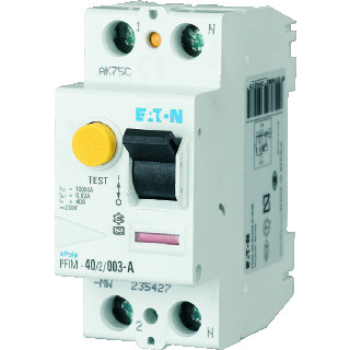 Eaton Industries P FIM aardlekschakelaar 1, 2 polen, nom. (meet)spanning 230V, nom. (meet-)stroom 63A, nom. foutstroom 0.1A, type lekstroom A, DIN-rail, 2 modulen 18 mm, maat (conform DIN 43880) 1, breedte in module-eenheden 2, nom. afschakelvermogen EN 60898 0.6kA, stootspanningsvastheid 0.25kA,