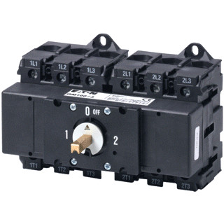 Lastscheider QM100/3, omschakelaar, 2x3 polen, thermische stroom lthe 100 A, met as 6mm vierkant