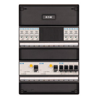 Eaton Industries installatiekast, (hxbxd) 330x220x79mm, opbouw, 3 fasen, beveiliging installatie-/aardlekautom, totaal aantal groepen 7, 6 lichtgroepen, 7 groepen achter aardleksch, 2 aardlekschakelaars 30mA, kookgroep 1-fase, breedte in module-eenheden 12, behuizing kunststof,