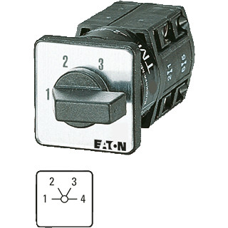 Eaton Industries besturingsschakelaar, uitvoering schakelaar standenschakelaar, 3 polen, max. nom. bedrijfsspanning Ue bij A 500V, nom. continustroom Iu 10A, 4 schakelstanden, apparaatbouwvorm inbouwapparaat, geschikt voor frontbevestiging, uitvoering van het bedieningselemen draaigreep,