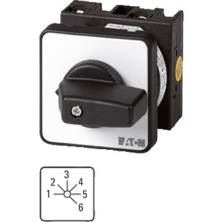 Eaton Industries besturingsschakelaar, uitvoering schakelaar standenschakelaar, 1 pool, max. nom. bedrijfsspanning Ue bij A 690V, nom. continustroom Iu 20A, 6 schakelstanden, apparaatbouwvorm inbouwapparaat, geschikt voor frontbevestiging, uitvoering van het bedieningselemen draaigreep,