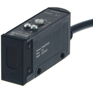 Omron E3 S fotocel reflectiesysteem, (hxbxd) 21x12x43mm, reikwijdte 2m, max. uitgangsstroom 100mA, spanningsbereik 10 - 30V, spanningstype DC, met reflector, beschermingsgraad (IP) IP67, aansluitwijze aansluitkabel, uitgang PNP, helderschakelend, donkerschakelend, afmeting 43X21X12,