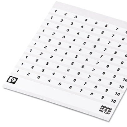 Coderingskaart, zelfklevend, bedrukt met de oplopende getallen: 11 ... 20, 10-delige coderingsstroken met 10 gelijke decaden, wit, voor klemmen met een breedte van: 7,5 mm