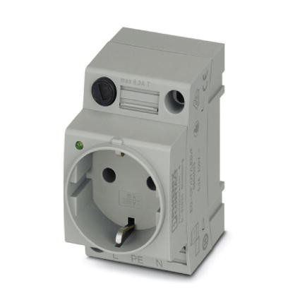 Contactdoos, Poolbeeld type CF, schroefaansluiting, lichtindicatie en zekering 5 x 20 mm, 6,3 A, grijs, voor railmontage, montage in de service-interface of directe montage, 250 V AC, 6 A, -20 °C, 60 °C, VDE 0620-1