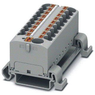 Verdelerblok, nominale spanning: 800 V, nominale stroom: 32 A, aansluitmethode: Push-in-aansluiting, Push-in-aansluiting, aantal aansluitingen: 19, doorsnede: 0,2 mm² - 6 mm², AWG: 24 - 10, breedte: 64,8 mm, kleur: grijs, montagetechniek: NS 35/7,5, NS 35