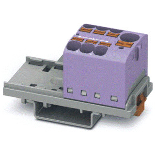 Verdelerblok, nominale spanning: 450 V, nominale stroom: 32 A, aansluitmethode: Push-in-aansluiting, Push-in-aansluiting, aantal aansluitingen: 7, doorsnede: 0,2 mm² - 6 mm², AWG: 24 - 10, breedte: 28,6 mm, kleur: paars, montagetechniek: NS 35/7,5, NS 35/