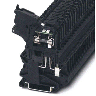 Hendelzekeringsklem, kleur zwart, voor 5 x 20 mm glaszekeringen, met led voor 24 V DC