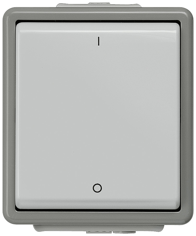 DELTA fläche IP44, AP Dark gray/light gray OFF switch 2-pole, 10A 250V 66x 75 mm Our DELTA IP44 surface-mounting range provides you with an attractive design, increased safety and easy operation. The DELTA IP44 surface-mounted range impresses with its brea