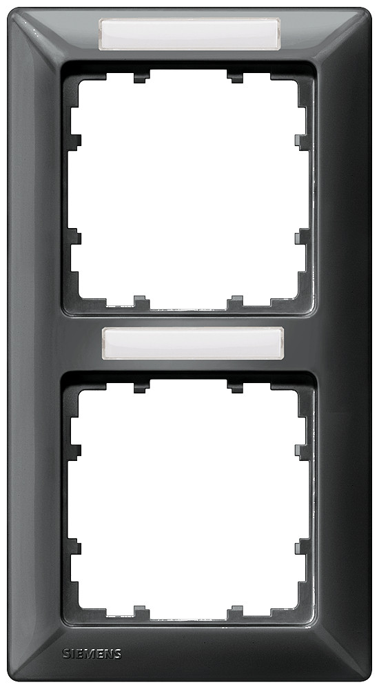 Siemens afdekraam schakelmateriaal, kunststof, (bxh) 80x151mm, uitvoering oppervlakte glanzend, montagerichting verticaal, tekstveld/beschrijvingsvlak, 2 eenheden, beschermingsgraad (IP) IP20, 1 eenheden horizontaal, slagvastheid > IK10, RAL-nummer 7016, kwaliteit thermoplast,