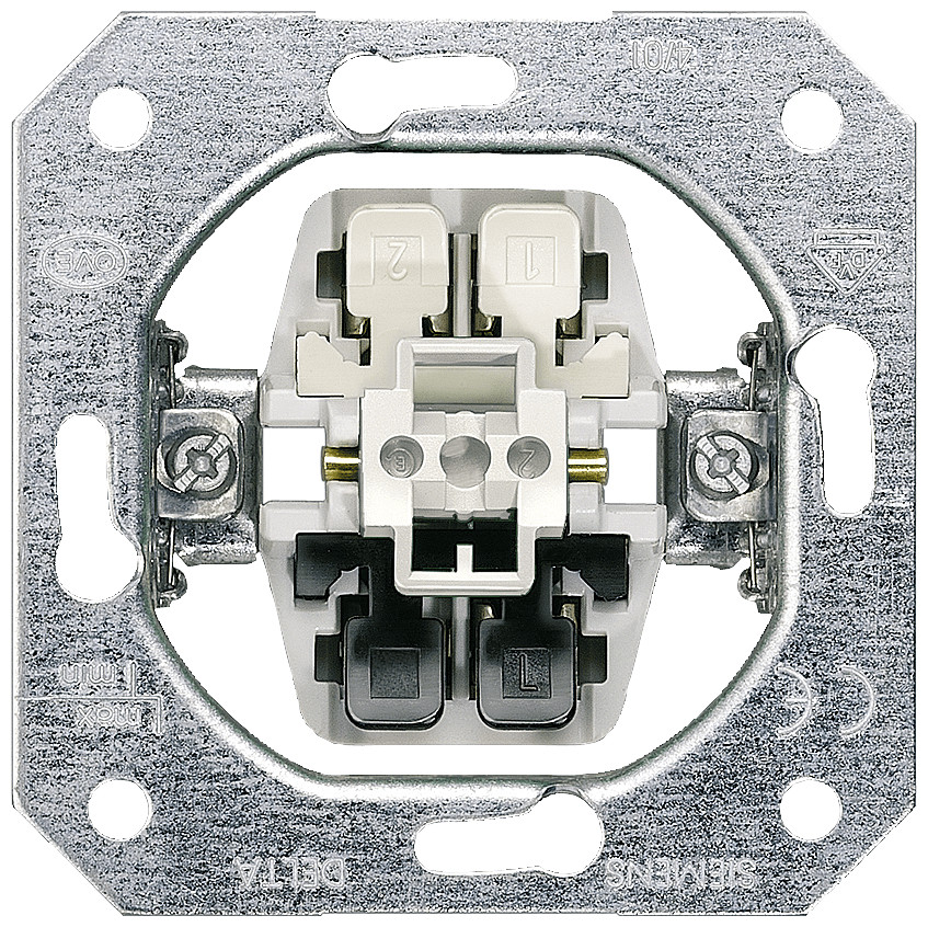 Siemens installatieschakelaar, metaal, inbouw (stucwerk), type schakeling wisselschakelaar, verlichting optioneel, bedieningswijze wip/drukker, samenstelling basiselement, beschermingsgraad (IP) IP20, functie verlichting controle (instand), aansluitwijze steekklem, 1 wippen,