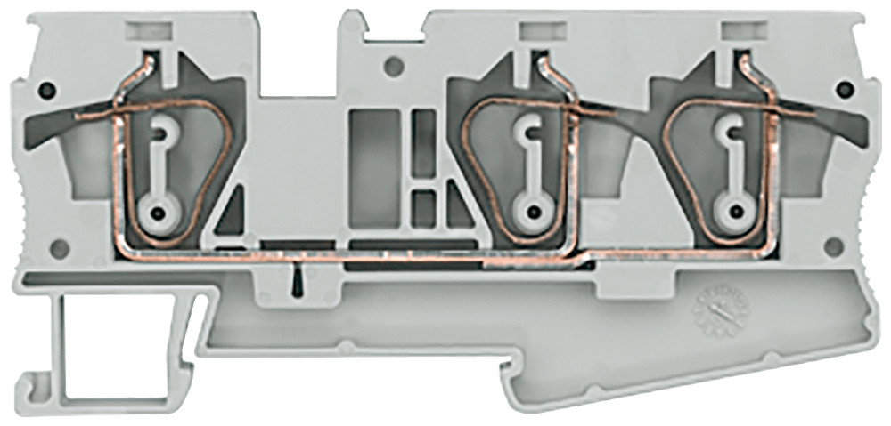 Terminal, spring-loaded terminal, 3 clamping points, through-type terminal, 6 mm², gray