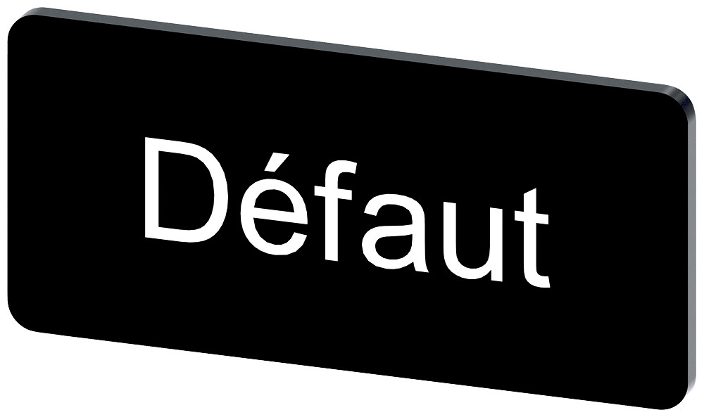 Labeling plate for snapping on or gluing on label holder, label size 12.5x27 mm, black label, white font, with inscription: Défaut Labeling plate for labeling the SIRIUS ACT pushbuttons and indicator lights. Under the brand name SIRIUS ACT, Siemens offers