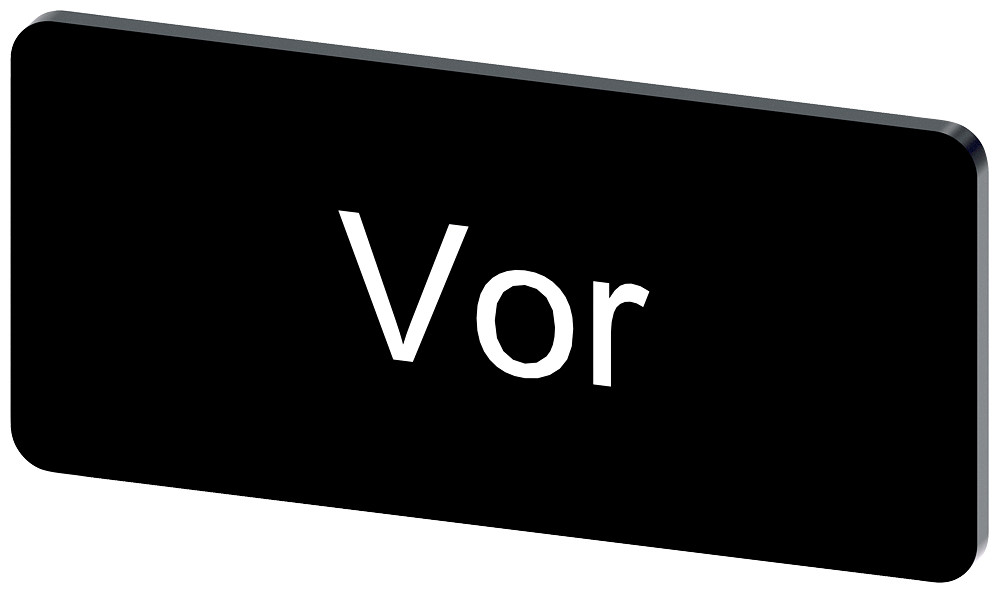 labeling plate for snapping on or gluing on label holder, label size 12.5 x 27 mm, black label, white font, with inscription: Vor Labeling plate for labeling the SIRIUS ACT pushbuttons and indicator lights. Under the brand name SIRIUS ACT, Siemens offers a