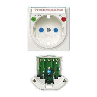 Siemens wandcontactdoos (wcd schakelmat.), wit, uitvoering overig, 2 actieve contacten (vlak), met signaallamp, 1 eenheid, 2 fasen, opdruk/indicatie overig, aansluitwijze overig, met verhoogde aanraakbeveiliging, RAL-nummer 9010