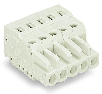 Wago kabelconnector v printplaatconnect., behuizing grijs, contactuitvoering contrastekker (female), hoek contact/geleideraansluiting 180° (horizontaal), verbindingswijze printplaat naar kabel, uitvoering elektrische aansluiting veerklemaansluiting, aansluitbaar kabeltype ronde kabel,