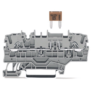 2-draads zekeringsklem voor platte mini autozekeringen met testmogelijkheid met extra brug zonder defectindicatie 2,5 mm² Push-in CAGE CLAMP® g