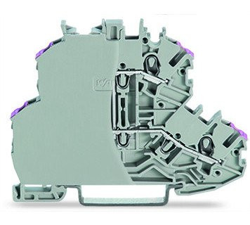 2-etageklem 4-draads rijgklem met afsluitplaat L zonder markeringsdrager intern gebrugd Geleiderinvoer paars gemarkeerd voor draagrail 35 x 15