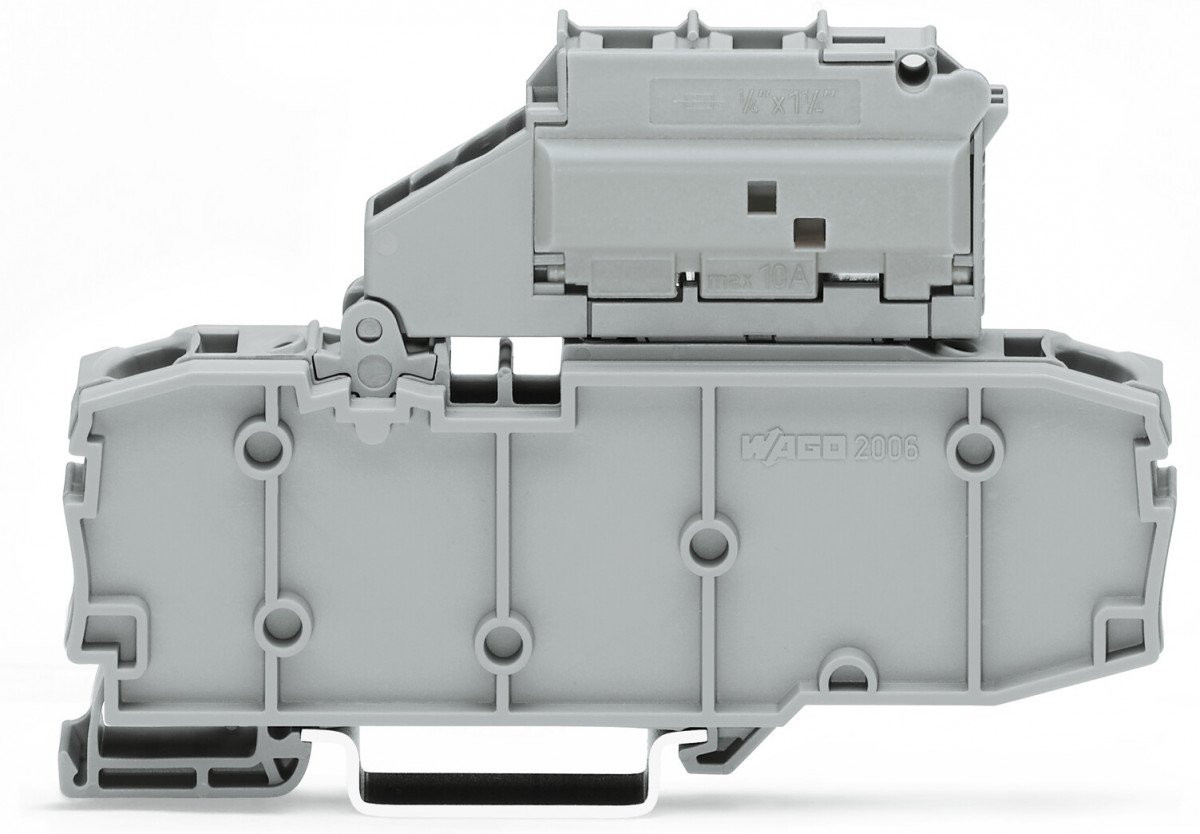 Wago TOPJOB S 2006 zekeringsrijgklem, grijs, (bxdxh) 10.4x59x96.3mm, uitvoering zekeringspatroon overig, DIN-rail 35mm, uitvoering zekeringshouder (patroon zwenkbaar, nom. (meet)stroom In 10A, aansluitpositie boven, aansluitbare geleiderdoorsnede eend 1 - 10mm²,