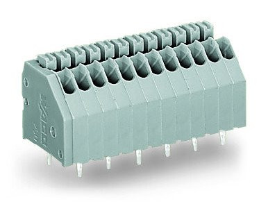 Wago printplaatklem, hoogte 13.1mm, 4 elektrische aansluitingen, 1 aansluitniveaus, rastermaat aansluitingen 2.5mm, hoek printplaat/geleideraansluiting 45°/135° (schuin naar ond, nom. (meet)stroom In 4A, nom. (meet)spanning 160V, toegekende stootspanning 2.5kV, overspanningscategorie III,