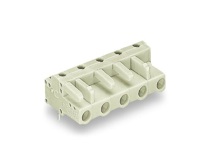 Wago printplaatconnector, 4 polen, 1 insteekcontactrijen, gebruikstemperatuur -60 - +85°C, brandbaarheidsklasse isolatiemateri V0, connectoruitvoering vrije connector, contactuitvoering pen, geschikt voor printplaatdikte 1.5mm, hoek printplaat/contact °/180° (horizontaal), behuizing grijs,