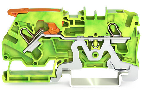 2-draads aardklem met hendel en Push-in CAGE CLAMP® 4 mm² met testopening Markering aan zijkant en in het midden voor draagrail 35 x 15 en 35 x 7